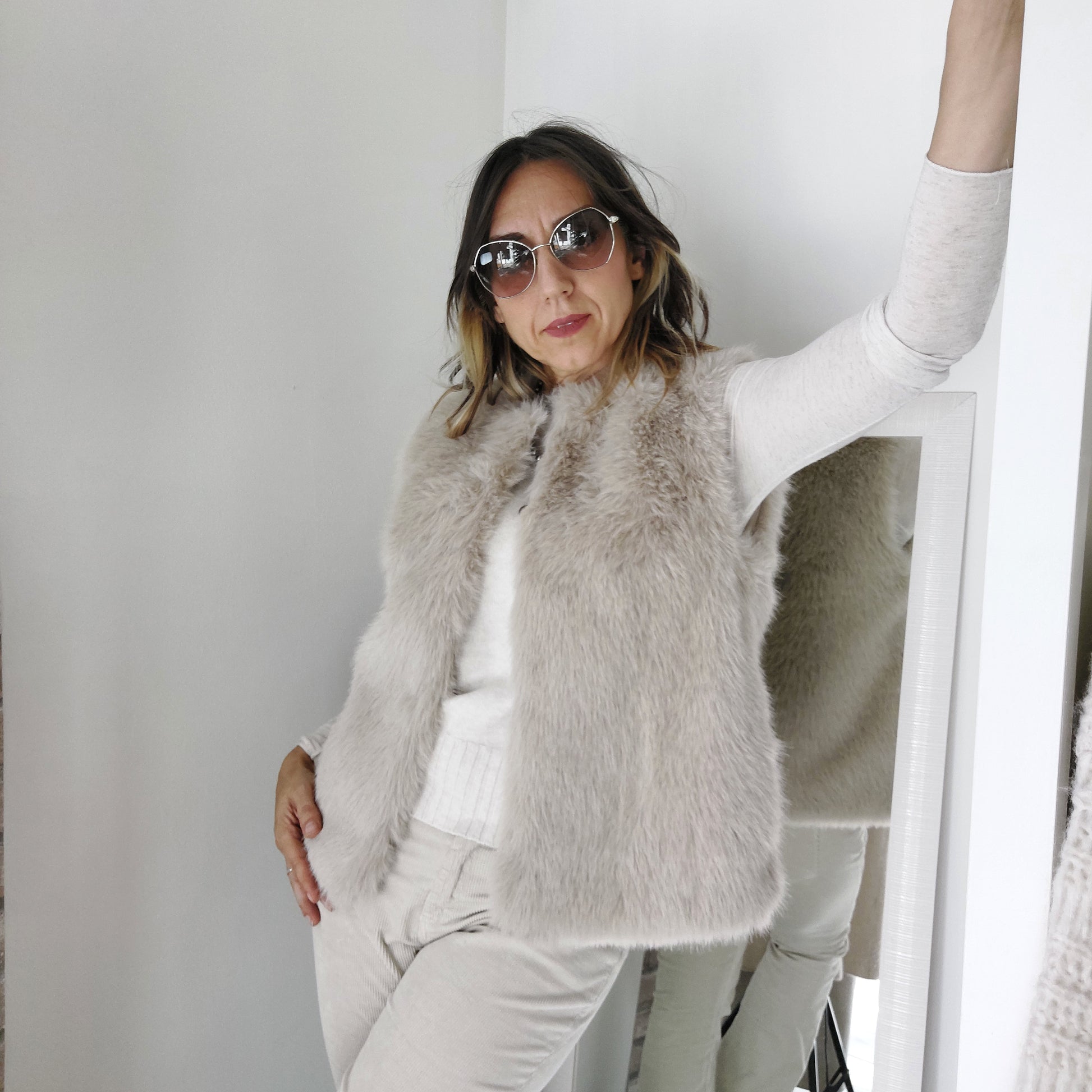 Gilet in eco pelliccia effetto pelo lungo, morbidissimo al tatto e caldo al punto giusto.