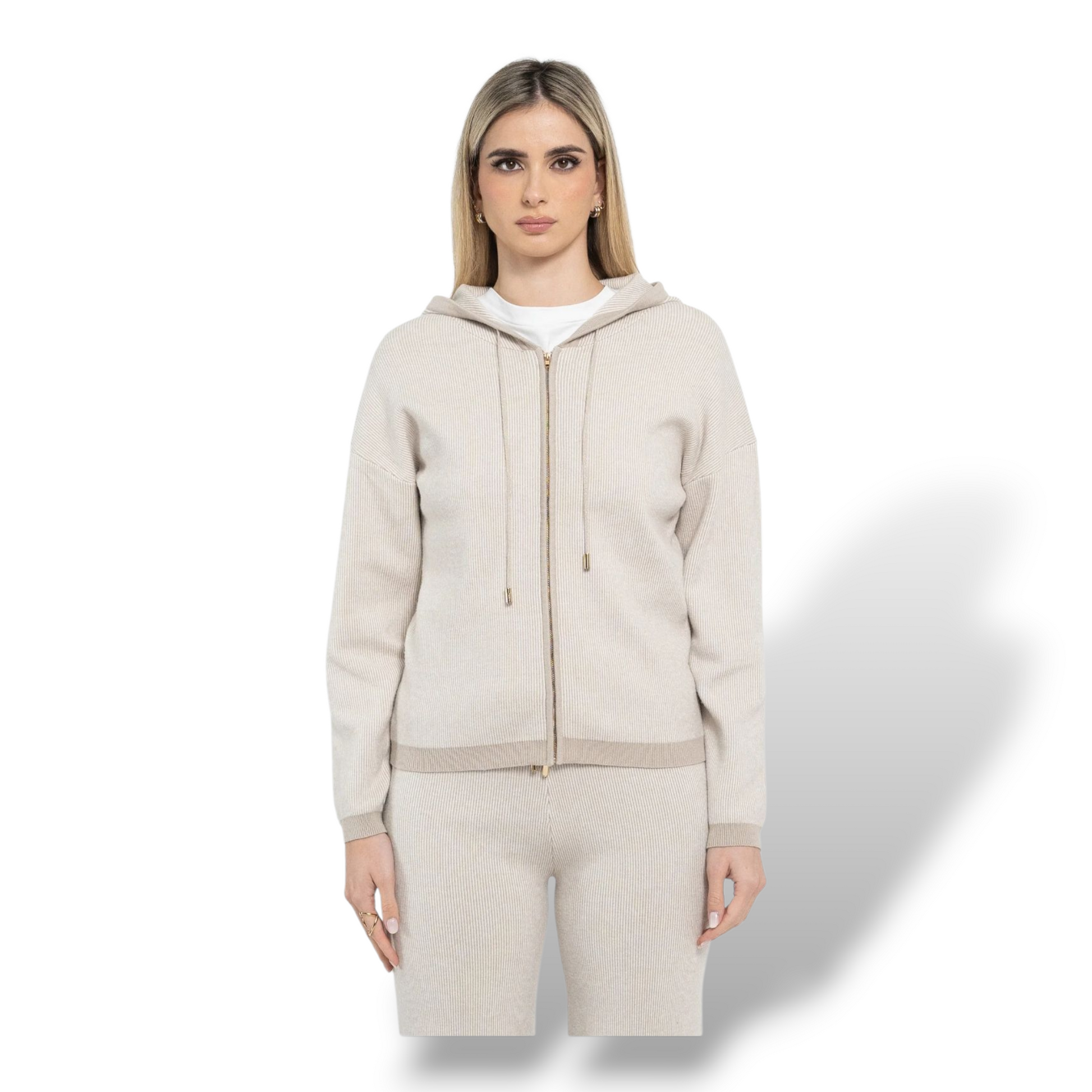 Felpa a coste con zip davanti in metallo, cappuccio e lacci con finalino personalizzato VR.