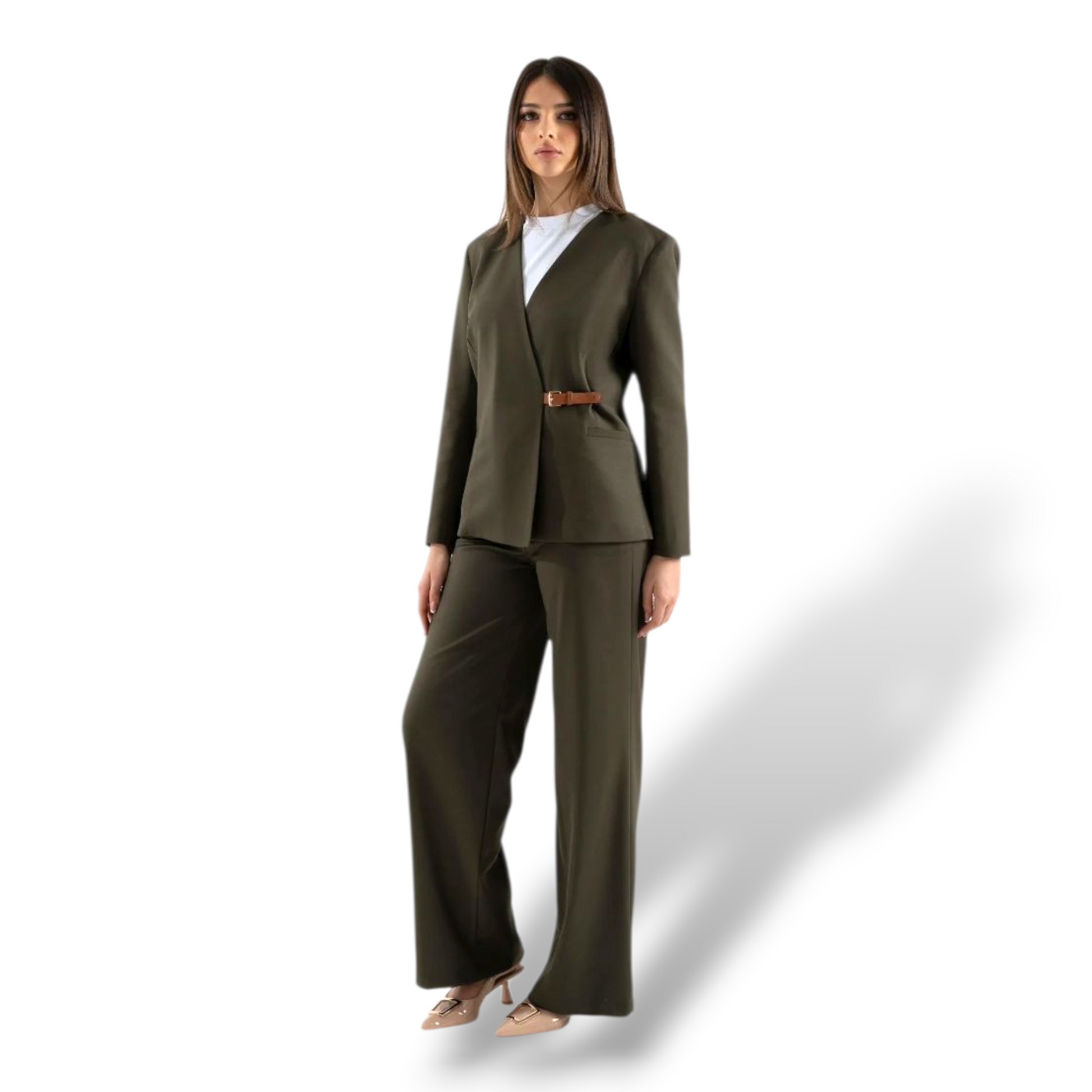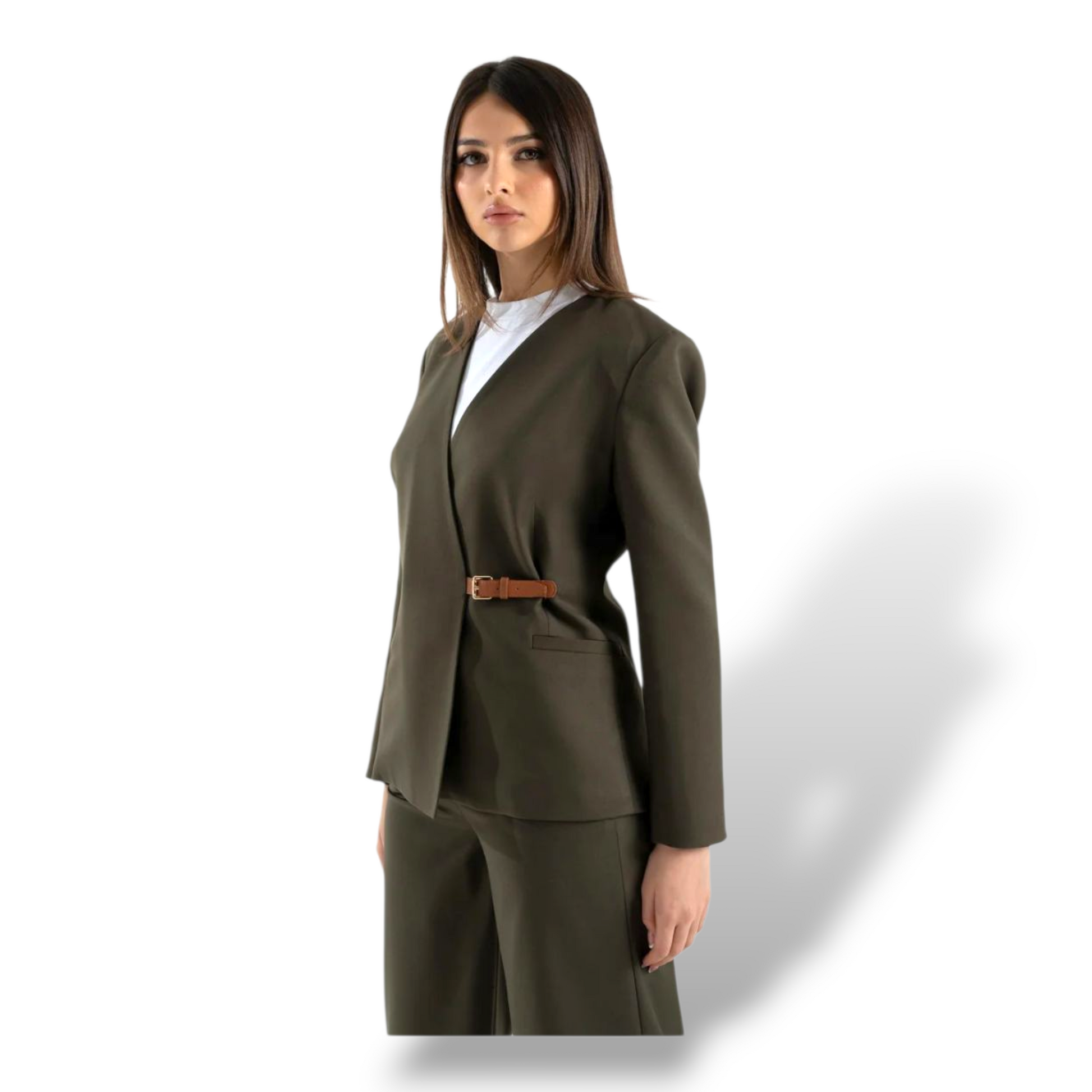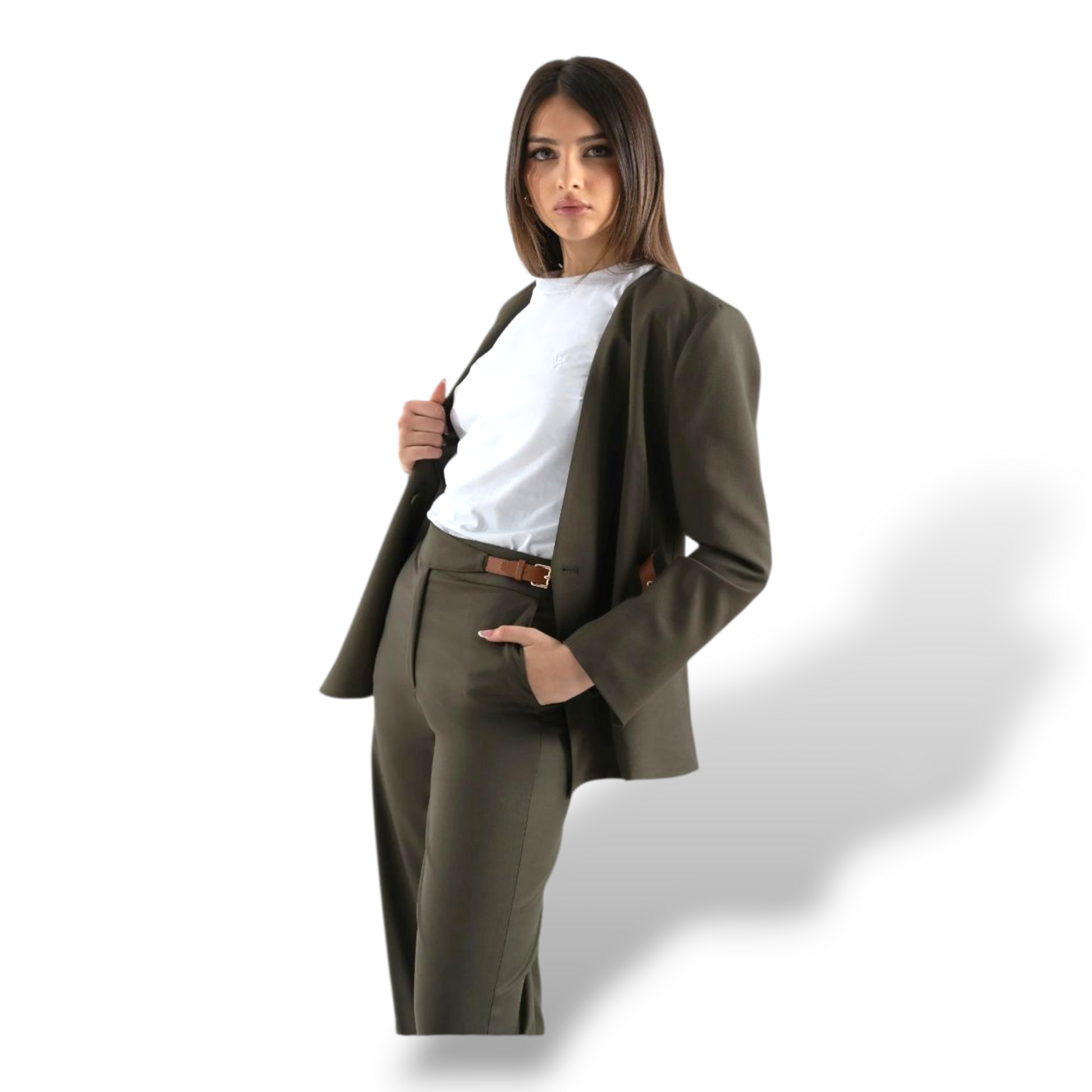 Completa il look con il pantalone o la gonna.